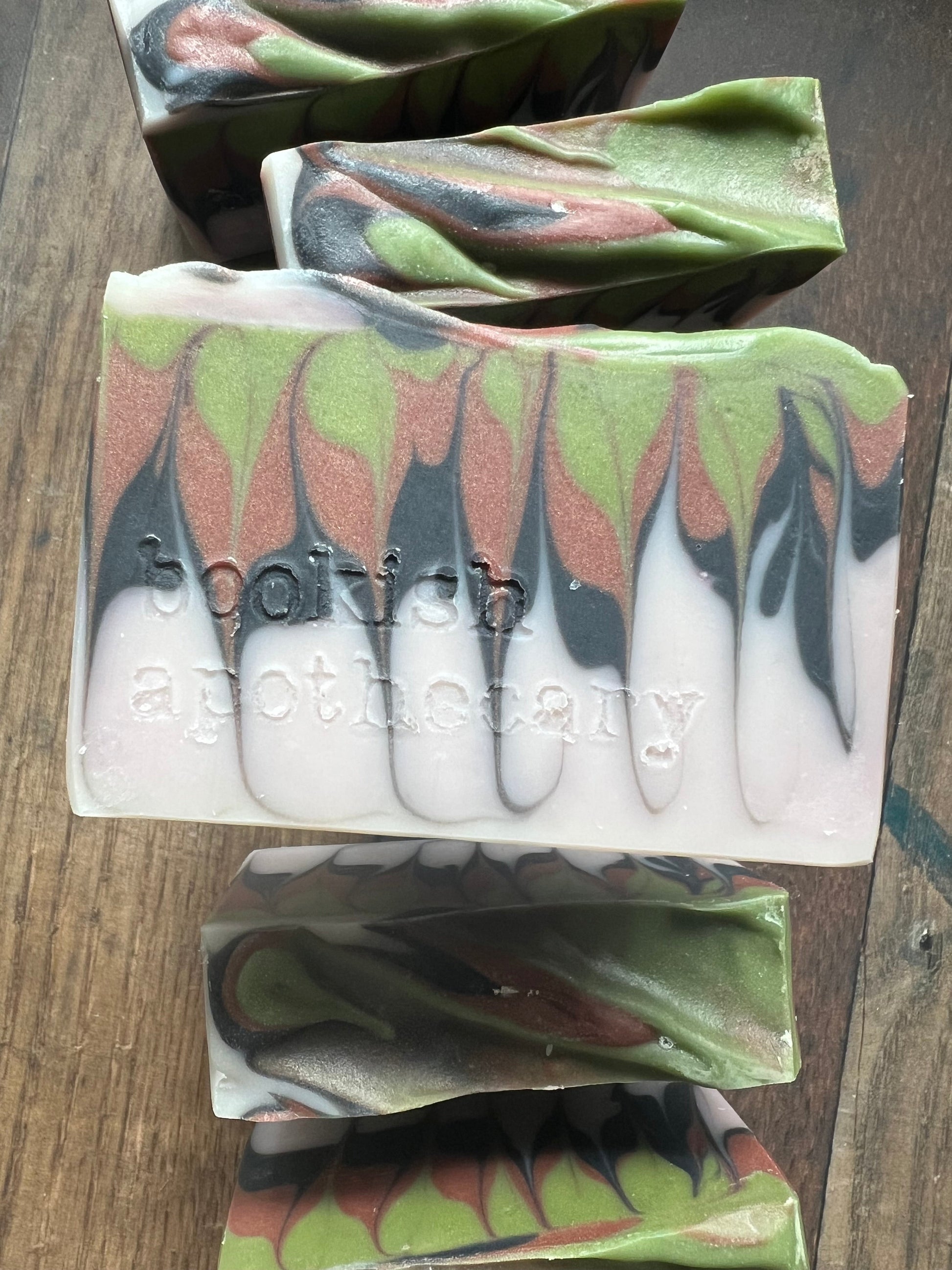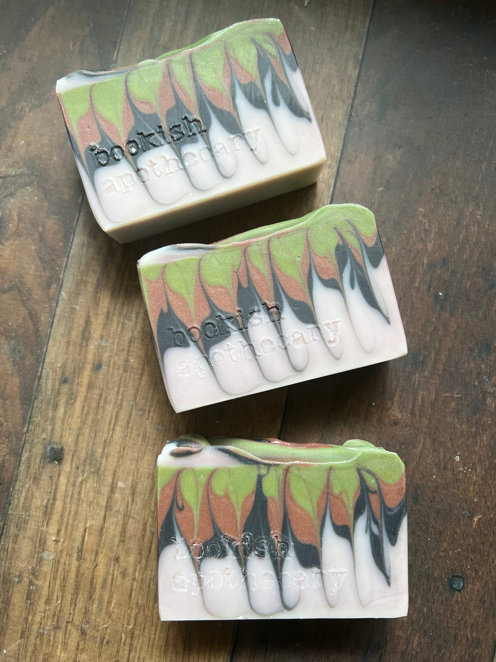 Crafted with olive oil, sunflower oil, coconut oil, shea butter, kokum butter, castor oil, coconut milk, fragrance, and micas.